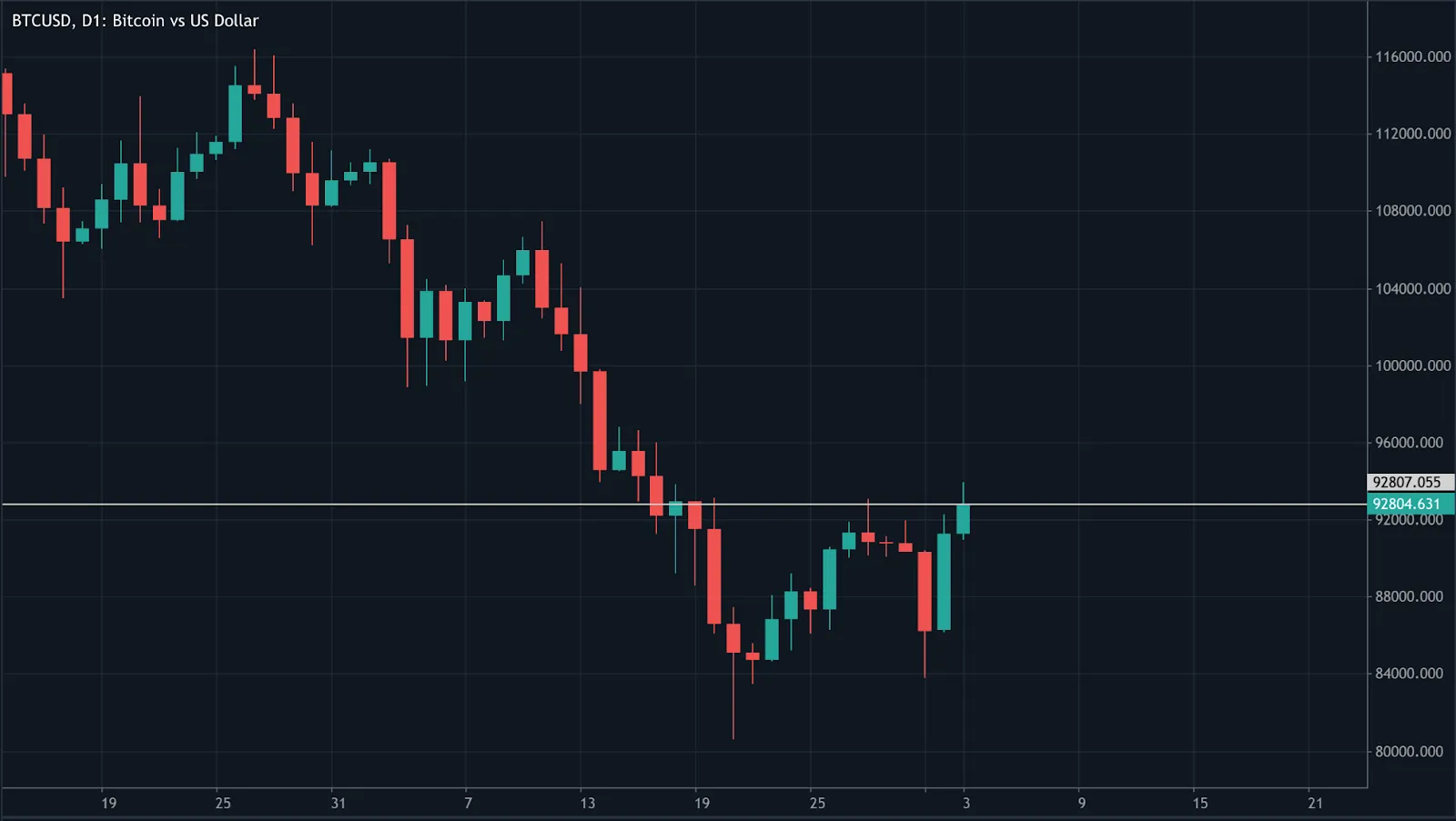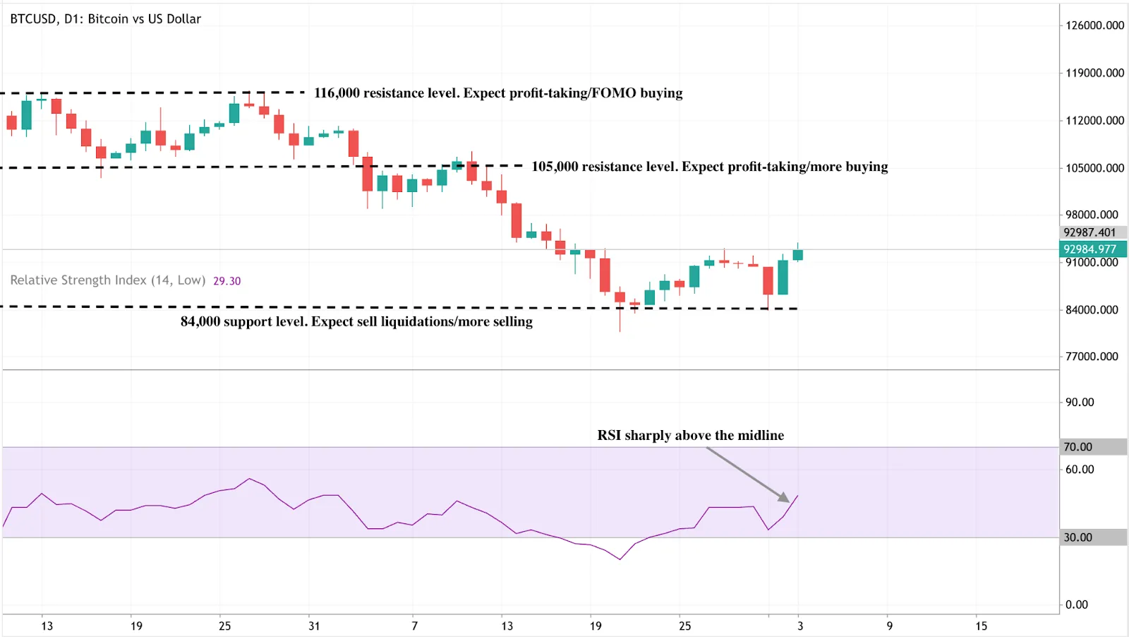 At the time of writing, BTC/USD is trading just under $93,000, extending its bounce from the key $84,000 support region - an area where deeper declines could have intensified liquidations. The recovery now places bitcoin closer to the $105,000 and $116,000 resistance zones. These areas may encourage profit-taking, although a clean break above them could trigger renewed upside momentum as confidence returns.