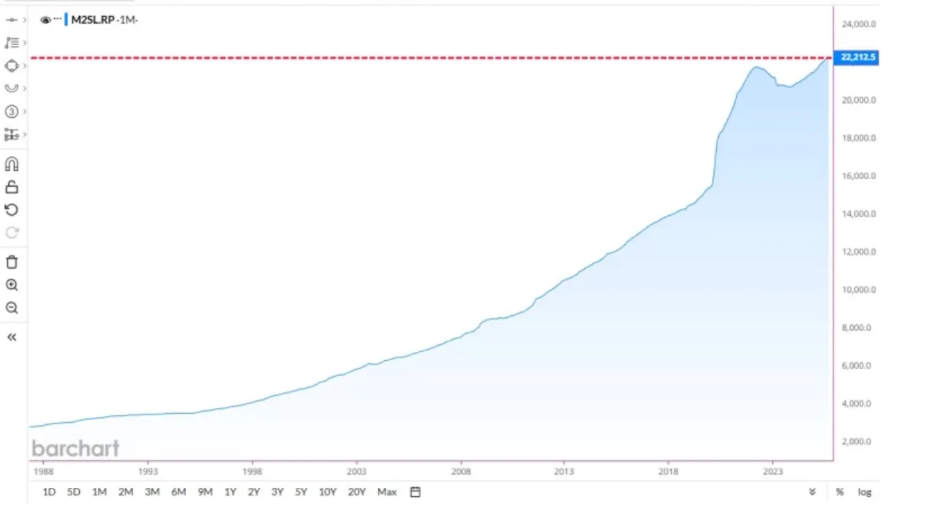 Bitcoin’s strongest rallies tend to follow rapid money supply growth. As fiat loses purchasing power, investors gravitate toward scarce assets like BTC.
