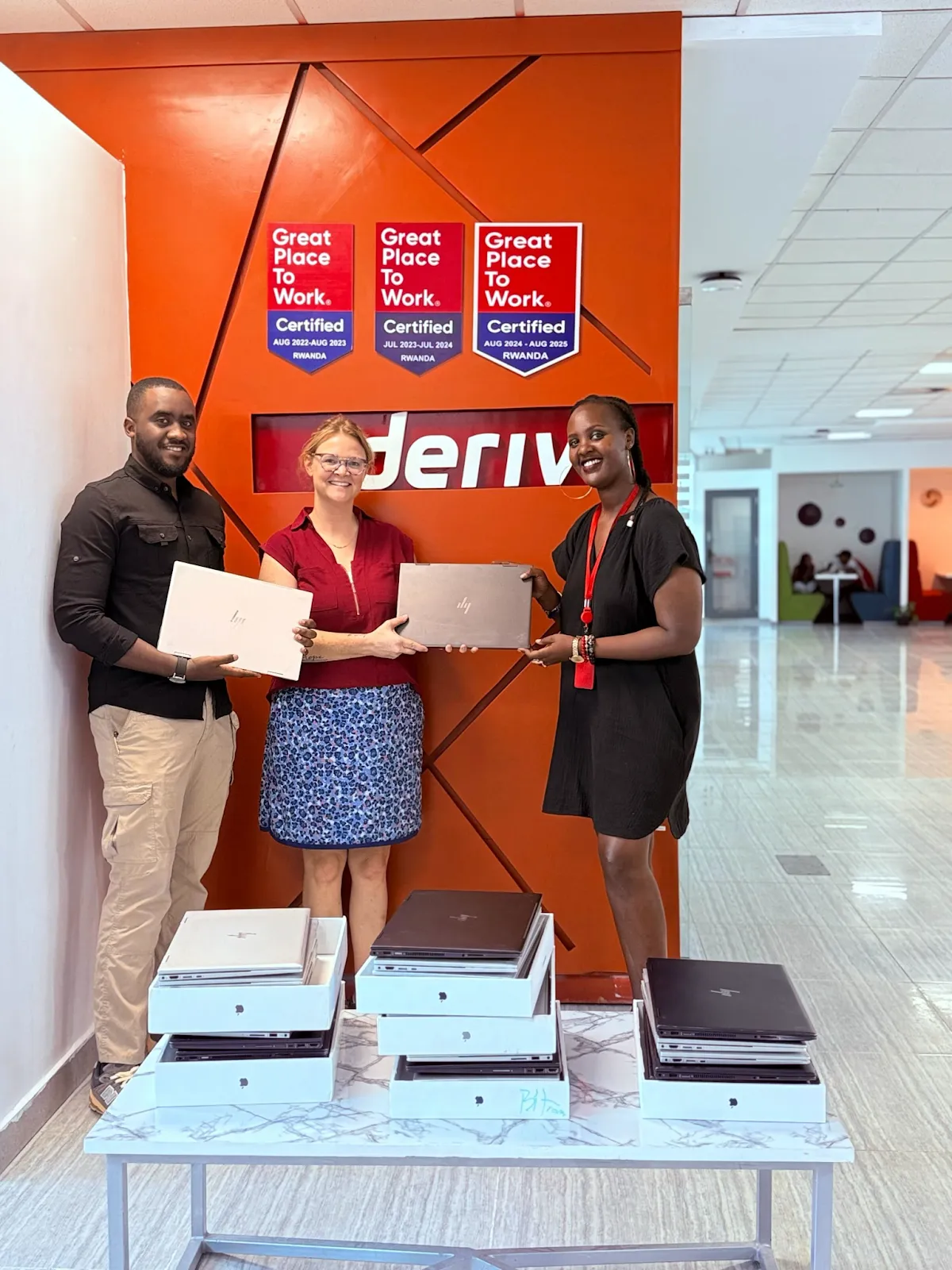 In Kigali, Deriv partnered with DuHope, an organisation that helps women transition out of street-based survival work. To support DuHope’s mission, Deriv donated 33 laptops to create a computer literacy training room.
