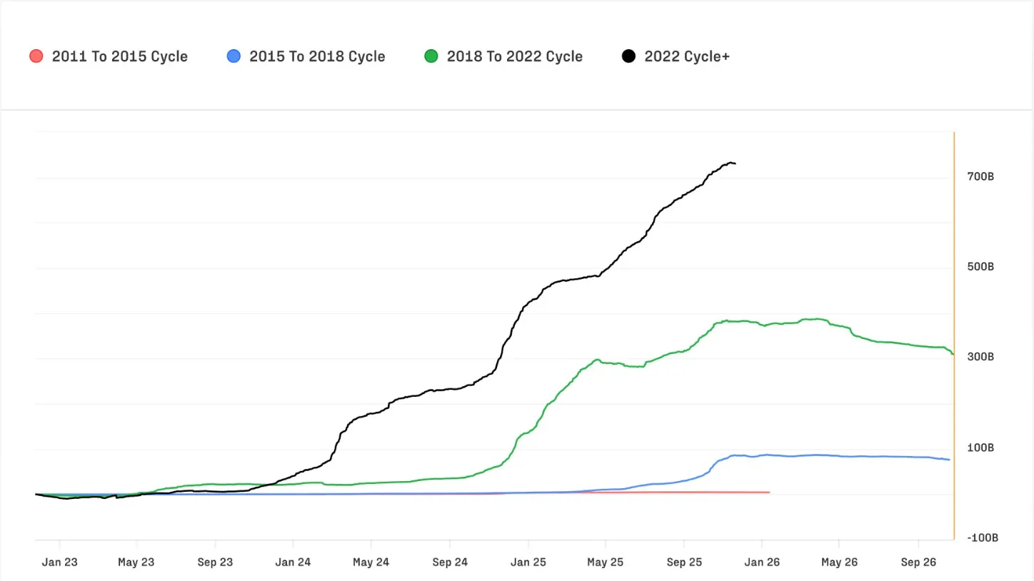 Meanwhile, Bitcoin’s broader backdrop continues to evolve. Glassnode’s Q4 Digital Assets Report highlights that the 2022–2025 cycle has attracted a record-breaking $732 billion in net inflows - surpassing the sum of all previous cycles combined.